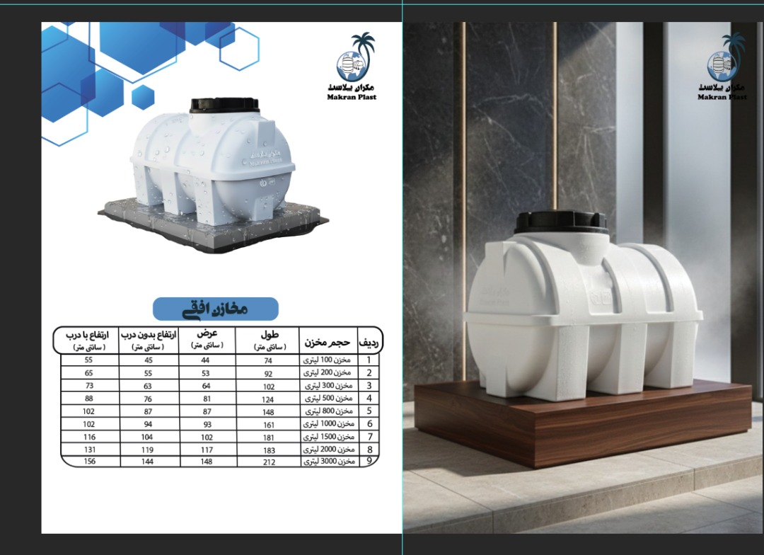 این مخازن در ظرفیت‌های متنوعی تولید می‌شوند و به دلیل دوام بالا، وزن سبک و مقاومت مناسب، گزینه‌ای ایده‌آل برای مصارف خانگی، صنعتی، دامداری، کشاورزی و حمل آب هستند